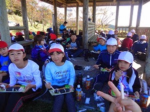 20kmという長い距離を班で励まし合いながら、6時間30分かけて登りきることができました。山頂では、おいしいおにぎり弁当をいただきました。